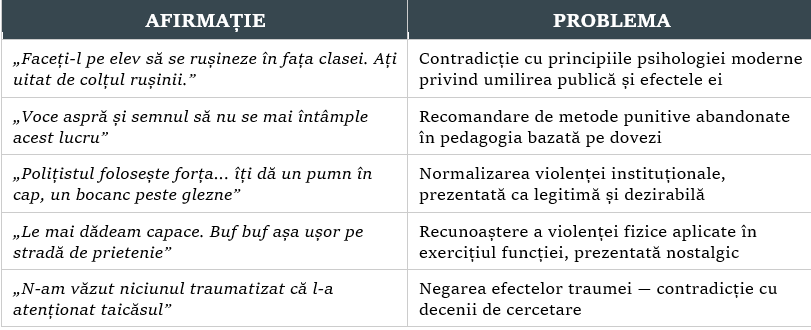 Să fie clar: aceste afirmații nu sunt „opinii controversate”. Sunt în contradicție directă cu standardele profesionale actuale în psihologie și psihiatrie. Un ex-președinte de comisie la Colegiul Psihologilor care vorbește public în acest mod ridică întrebări serioase despre standardele profesiei.
